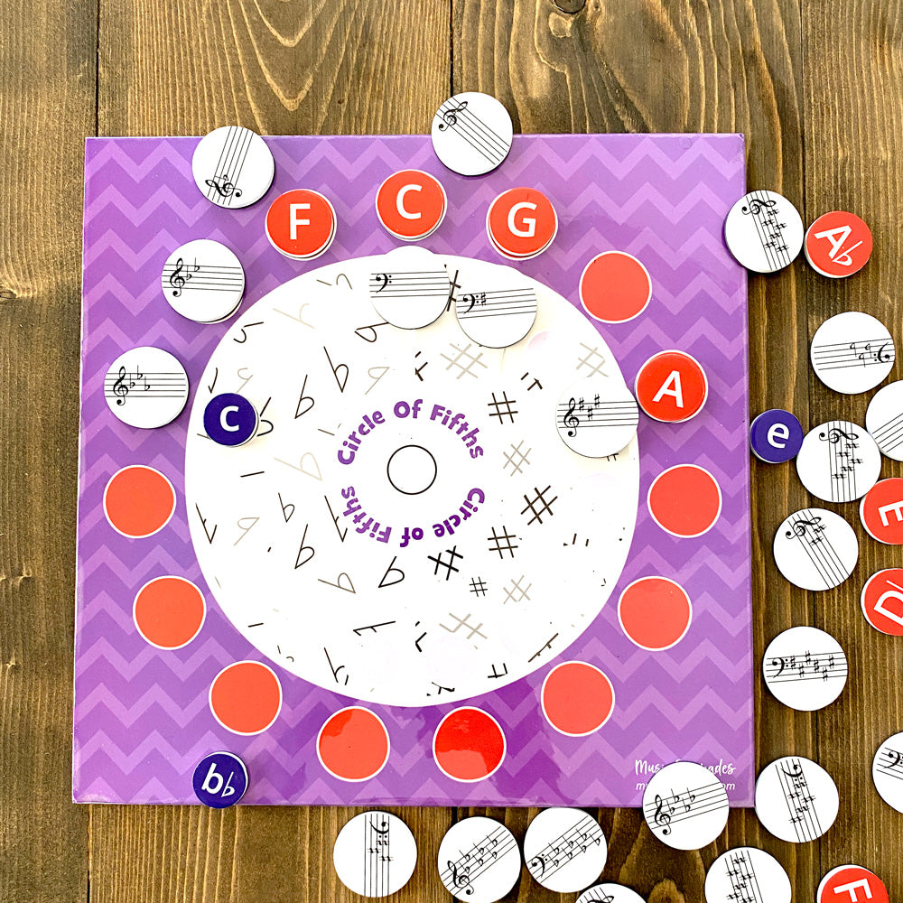 - Use the magnetic key signature discs on the Circle of Fifths Magnetic Board to help students learn the entire Circle of Fifths and order of accidentals. Use a dry erase marker to draw the major or minor keys on the board and students must place the correct key signature on top.