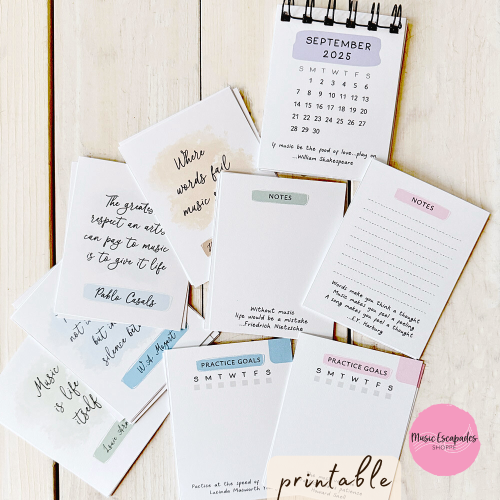 There’s something grounding about starting a new month with a fresh calendar and a quote that speaks to the soul. This printable Mini Calendar & Stationery Set is a little bundle of beauty and intention—designed to encourage consistency, creativity, and reflection in every corner of the music room.