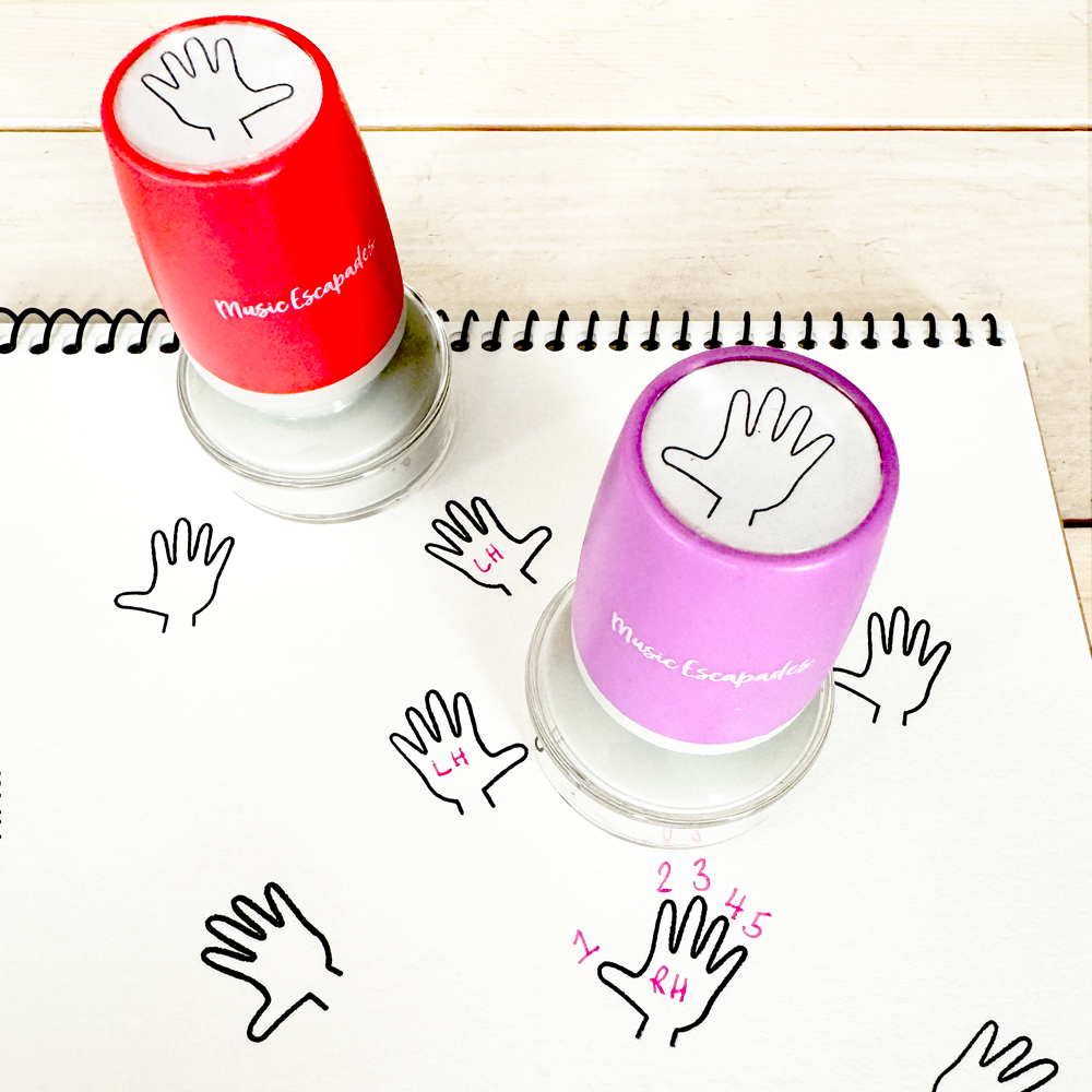 Hand Stamps is the perfect teaching solution for music students! There are many reasons to review finger numbers and left or right hand with beginning music students. The blank Hand Stamps will help you give gentle reminders to your students anywhere you need it. Use on sheet music, assignment books, and any other paper material.