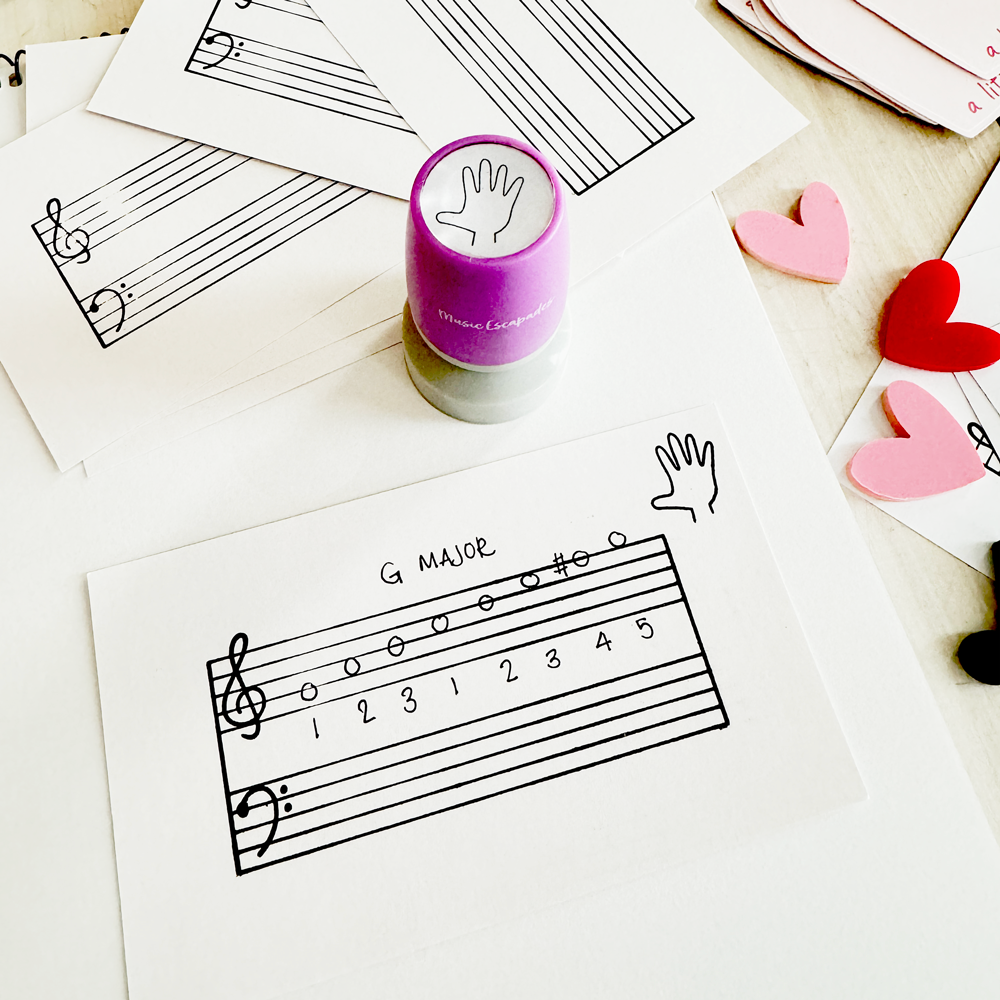 Your students will have fun with the Hands Stamp! They can stamp the hand needed for a particular song, color the fingers they need to use, write finger numbers, review left hand and right hand, and more with this cute stamp! Ask your students for ideas with using the Hands Stamp! I’m sure they’ll have fun ideas too.
